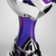 The necessity for this project to be designed, modeled, and project-led with an all-female team at Volpin Props was essential to our involvement with the tournament. While not a client-imposed requirement, we felt this helped to continue the spirit of the tournament and it would make our own fabrication process align with the core beliefs and goals of the series. The Milk Cup is one of our most complex assemblies, incorporating brilliant rhodium chrome and color-shifting satin purple/blue/gold paint. It stands at 20″ tall and is comprised of over 30 individual parts. The event plaque showcases a cast carbon fiber inlay on the logo, and team medals were fabricated to match – not only for the winners but also for MVP, Sportsmanship, and player coaches too!