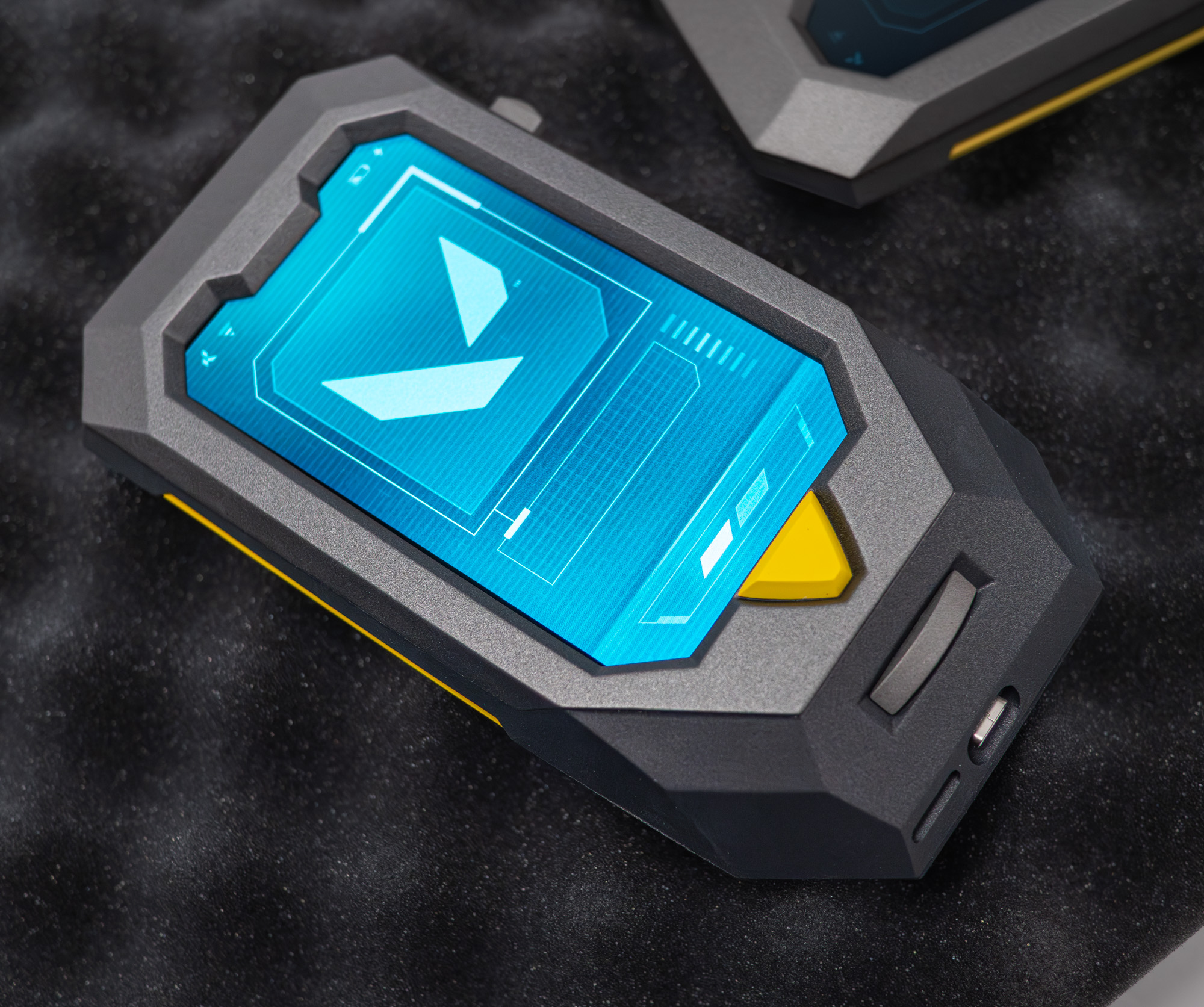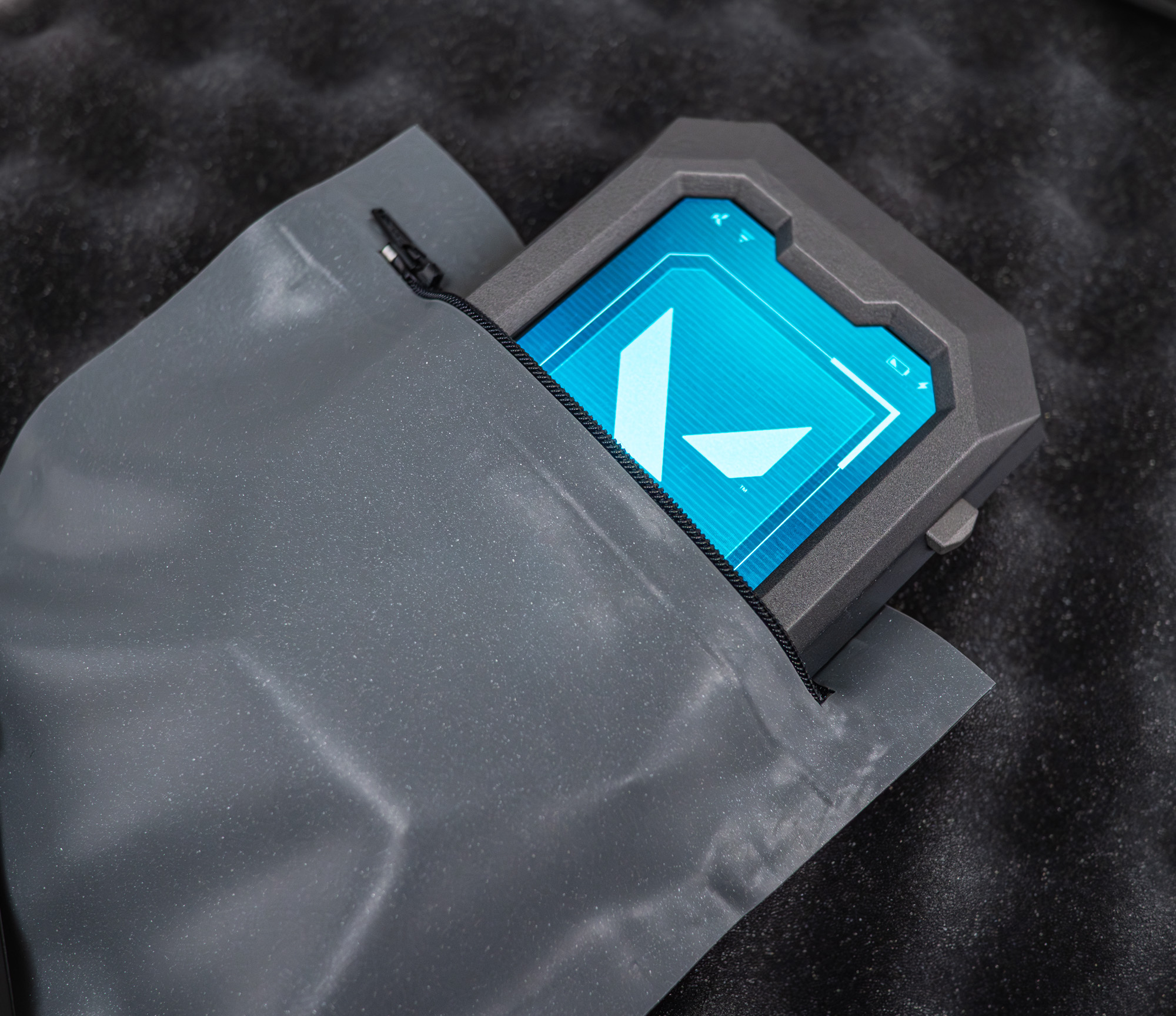 Eight total replicas were produced. Each one housed an internal battery as well as external USB power supply port. After booting up the device via a rear switch, a Valorant themed boot screen appeared along with in-game sound effects. Pressing the side button played a voice line from Veto, referencing the 2025 season trailer and the events of the in-game world from that year while showing his face obscured in shadow. Four different iterations of the voice line and accompanying artwork were programmed into these units, set in English, French, Chinese, and Japanese. Each Statcom was shipped in a sealed latex pouch which had to be torn open in order to access the device. Inside these pouches were more AR items; themed printouts that hinted at the character reveal to come.